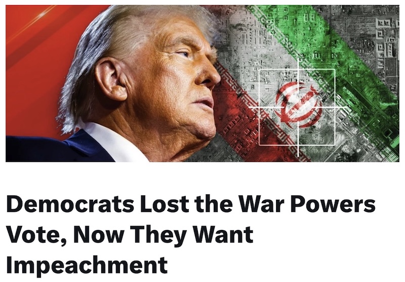 В случае операции «Эпическая ярость» каждый шаг в этой последовательности происходил именно так, как предусматривает закон. Президент инициировал удары. Конгресс получил необходимый отчет. Конгресс обсуждал резолюции о прекращении операции. Демократы продвигали эти резолюции. Оба голосования провалились.