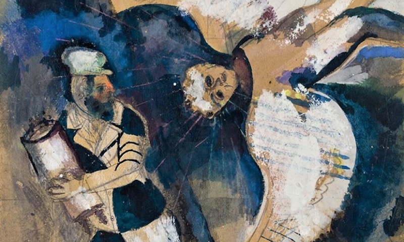 Марк Шагал создал серию картин «Экзодус 1947». Самую впечатляющую из них я видел на выставке в Нью-Йорке. В интернете её не нашёл.