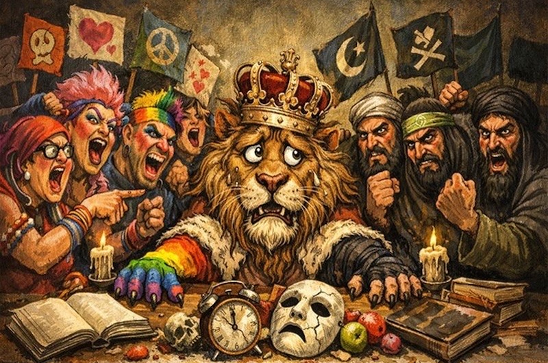 Активисты, искренне убеждённые, что бородатые мужчины могут быть женщинами, маршируют плечом к плечу с бородатыми мужчинами, которые не хотят, чтобы женщины вообще появлялись на людях.