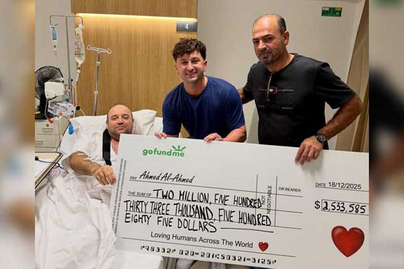 Чек Ахмеду вручил прямо в палате блогер и общественный деятель Закери Деренёвски, один из организаторов кампании на платформе GoFundMe. Видео вручения распространилось в социальных сетях. Всего в сборе приняли участие более 43 тысяч человек по всему миру. Среди доноров – американский еврейский миллиардер и управляющий хедж-фондом Билл Акман, пожертвовавший 99 999 австралийских долларов и публично поддержавший сбор в соцсети X.