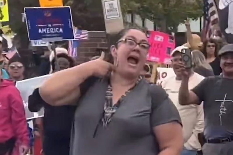 Речь идёт о женщине, которую, как утверждается, зовут Люси Мартинес и которая является учителем начальной школы Натан Хейл. Видео с ней во время протестной акции «No Kings» в минувшие выходные стало вирусным в сети. На записи она многократно подносит сложенные в виде пистолета указательный и большой пальцы к своей шее, как будто изображая выстрел, при этом, по-видимому, беззвучно произнося слово «бах».