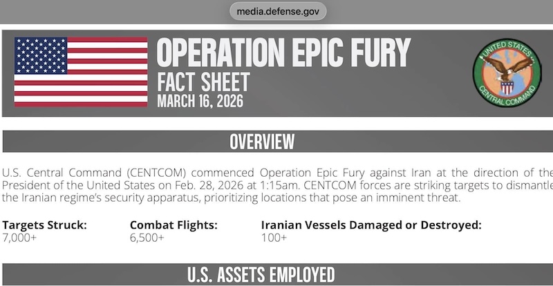 За эти 21 день американские и израильские силы поразили 7800 целей на территории Ирана. Уничтожено 92% пусковых установок баллистических ракет, 87 % заводов по производству дронов, 74% командных центров Корпуса стражей исламской революции, 68% аэродромов и узлов ПВО.