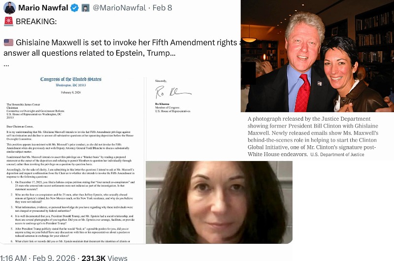 А пока, как стало известно, мадам Гилейн Максвелл, подруга и соратница Джеффри Эпштейна, отбывающая свои 20 лет наказания, должна давать показания в Конгрессе. Но тут ее адвокаты уже подсуетились и порекомендовали всезнающей держать язык за зубами и взять «пятую» – не свидетельствовать против себя…