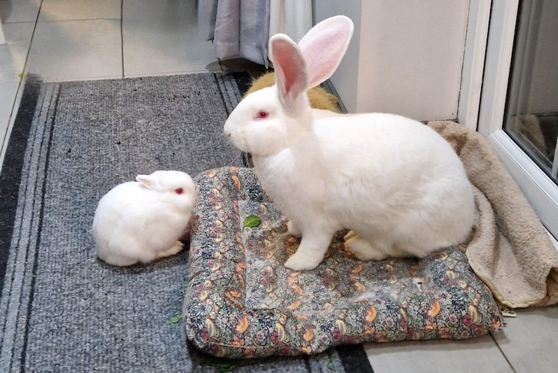 При этом ушастый отлично уживается со своей подругой — карликовой крольчихой Сьюзи, которая весит всего 450 г, то есть в 20 раз меньше.