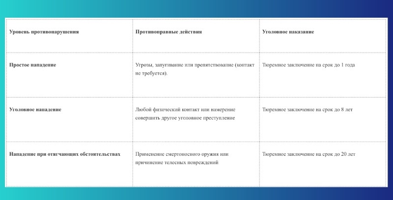 Нижеследующая таблица указывает меры ответственности за активное противодействие федеральным органам правопорядка.