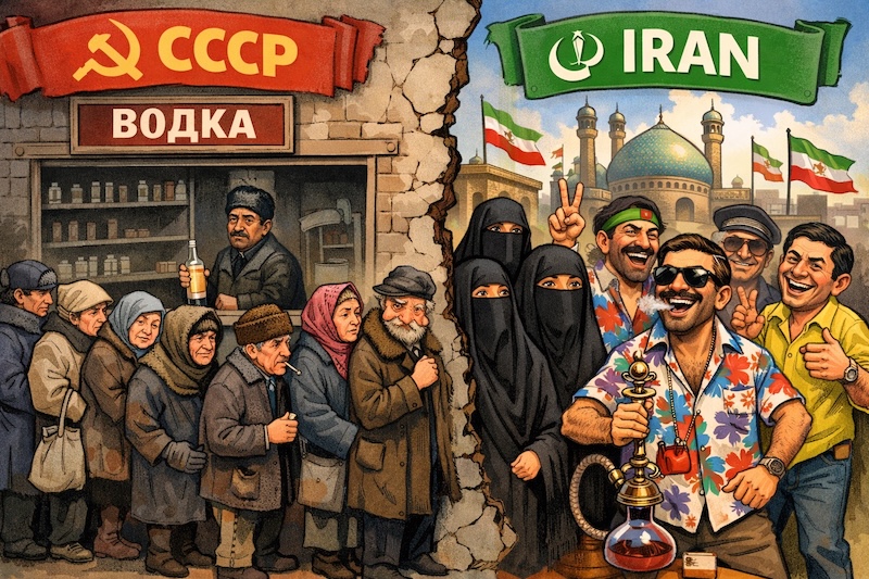 Иран под мощным ударом США и Израиля и народных протестов. Что держит на плаву режим мулл? Все догадки со стороны, все рассуждения политологов далеки от истины. Нужно быть внутри Ирана, жить общей жизнью со страной, чтобы понять и оценить происходящее. Могу только предположить: значительной части персов еще не стыдно и не скучно жить в Иране. Пора бы, но… Вот только очень уж им там стало страшно, что, всё-таки, оставляет надежду на скорую смену власти.