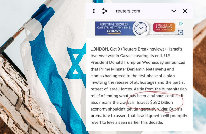 “Многие спрашивают меня, откуда мой оптимизм в отношении израильской экономики и почему я называю израильские акции «только для покупателей»? После окончания войны, я наткнулся на статью в Reuters. По оценкам, ВВП Израиля в 2025 на данный момент составляет около 570–610 миллиардов долларов, что, кстати, составляет 0,52% мирового капитала, в то время как население Израиля составляет около 0,12% населения мира, при этом на его долю приходится около 0,45% мирового богатства (17 место в мире) – то есть богатство Израиля примерно на 275–333% (примерно в 3–4 раза) превышает его относительную долю в мировом населении.