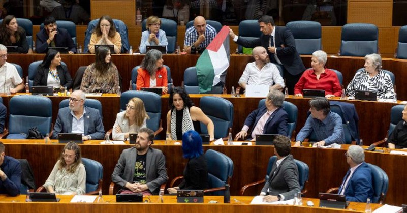 После этого потребовал снять с кресла палестинский флаг, который оставила депутат Химена Гонсалес (Jimena González, Más Madrid), отсутствовавшая в зале (она находилась в составе флотилии Сумуда, задержана и ждет депортации).