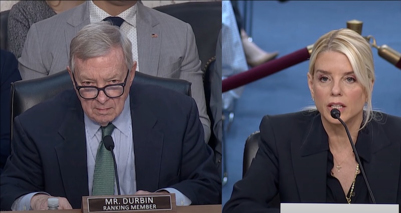 Во время порой напряжённых слушаний в Комитете по судебным делам Сената сенатор Дурбин попытался выяснить детали обсуждений Пэм Бонди с Белым домом Трампа относительно законности отправки подразделений Национальной гвардии в штаты, управляемые демократами, в рамках общенациональной кампании по борьбе с нелегальной иммиграцией и преступностью.