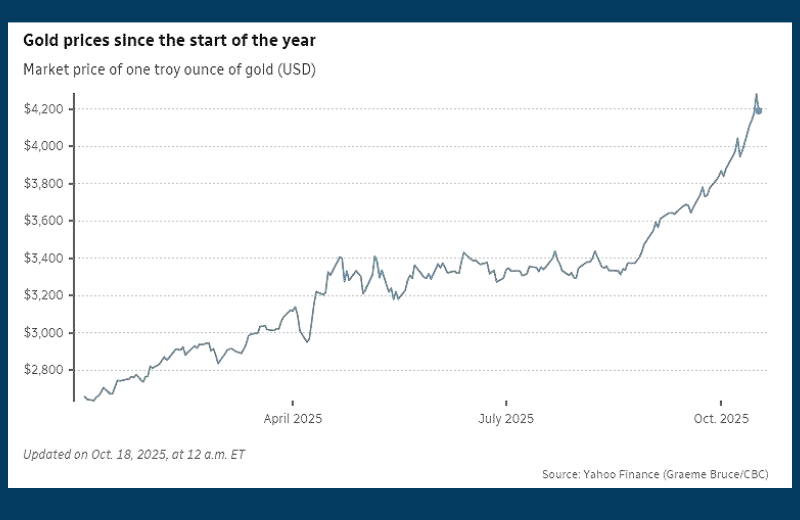 Цена на золото сейчас выше 4000 долларов, а прогнозируют и все 5000. Еще раз, золото – это защитный актив, а не спекулятивный, как криптовалюта. Говоря «спекулятивный», я не ставлю негативный оттенок. Крипта подвержена сильной волатильности. Там вы можете накосить кучу бабла или слить все за минуту (скорее – второе). Торговля золотом идет по иной схеме. Она коррелирует с другими рынками. И если золото растет, значит, что где-то образовалась дыра. Мы ее еще не видим. Но что-то скоро лопнет. Ну и, конечно, я вам не финансовый советник, просто делюсь своим субъективным мнением.